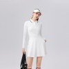 tennis suit long sleeved dress with polo ribbed collar and side pockets slim fit and versatile dress set