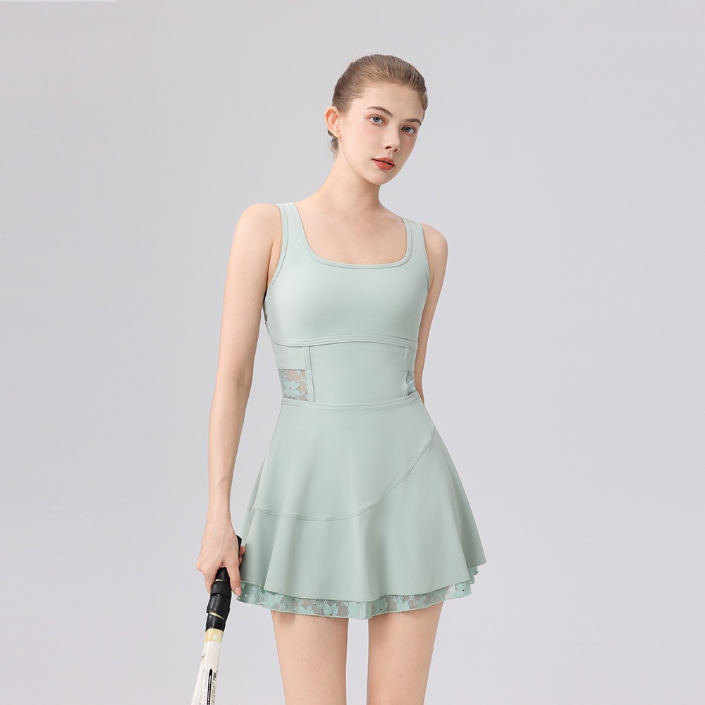 dress patchwork lace back cross badminton anti glare two-piece tennis skirt for women