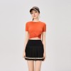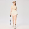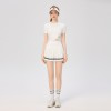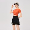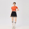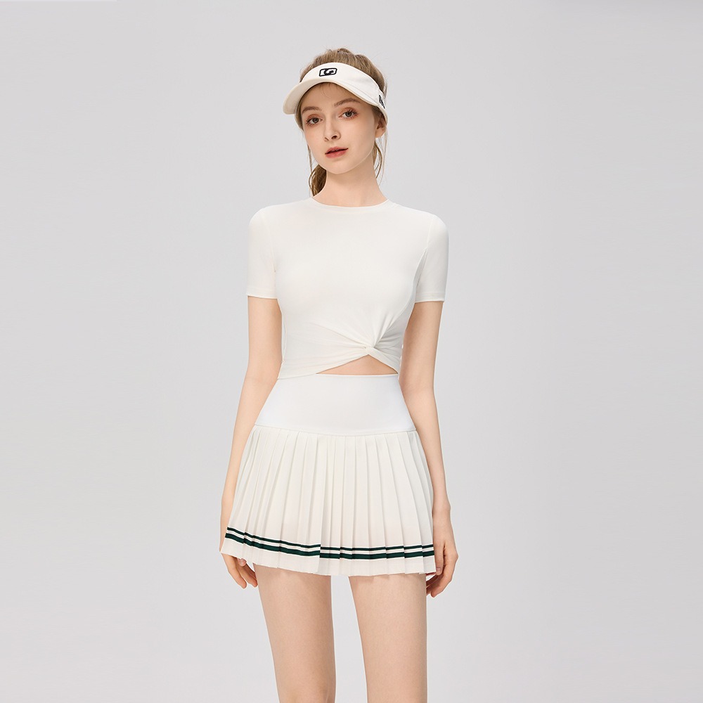 women new solid color twisted short sleeved quick drying top with exposed waist sports and casual tennis suit short skirt t-shirt