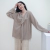 lotus leaf side length sleeve cashmere knitted pullover for women in autumn and winter new small v-neck cashmere sweater