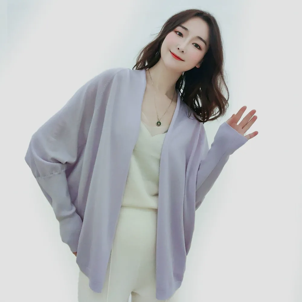 simple texture solid color loose and versatile outerwear spring new item layered shawl long sleeved knitted cardigan jacket
