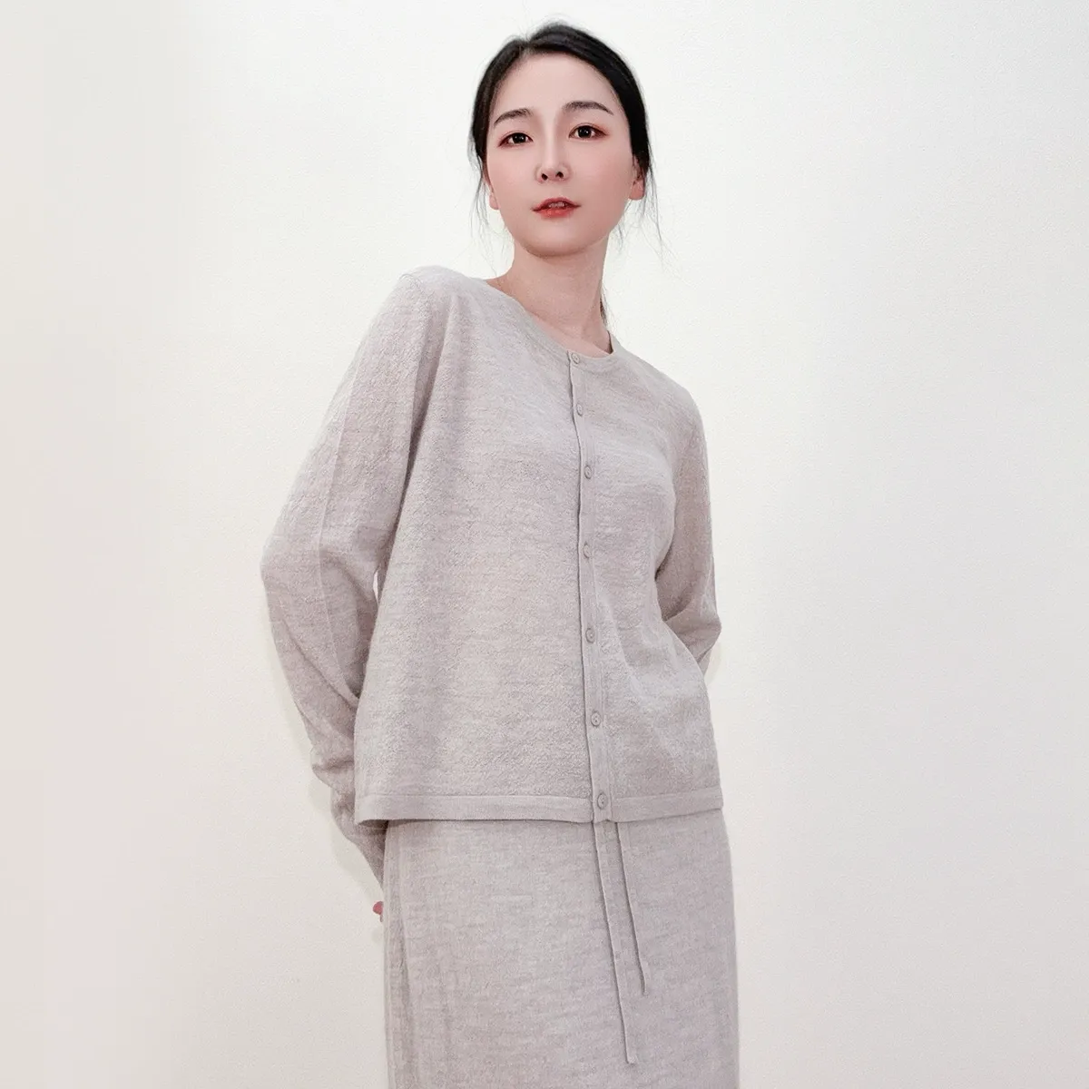 autumn and winter new round neck long sleeved royal alpaca wool knitted cardigan for women simple and versatile cardigan jacket