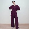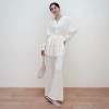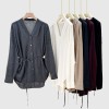 16 stitches fine spun mulberry silk wool v-neck long sleeved knitted shirt with a drooping effect slimming effect and tie up cardigan