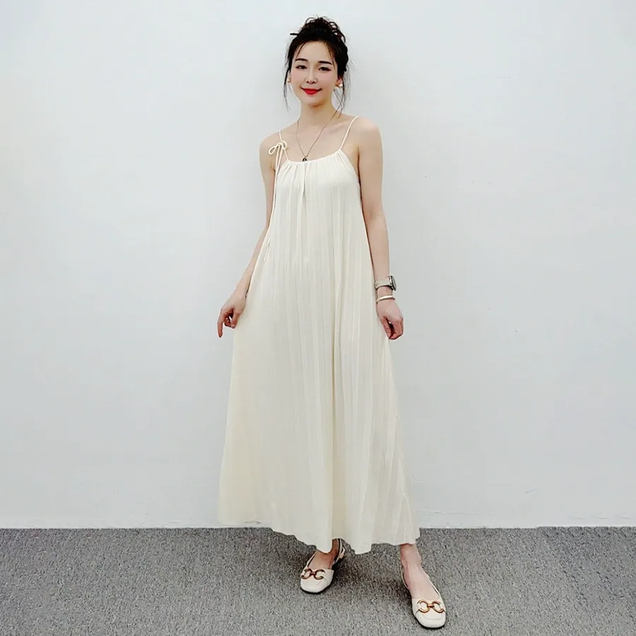 16 needle fine spun mulberry silk wool knitted lace up suspender dress with vacation style big a-line long skirt hiding flesh and showing off thinness