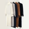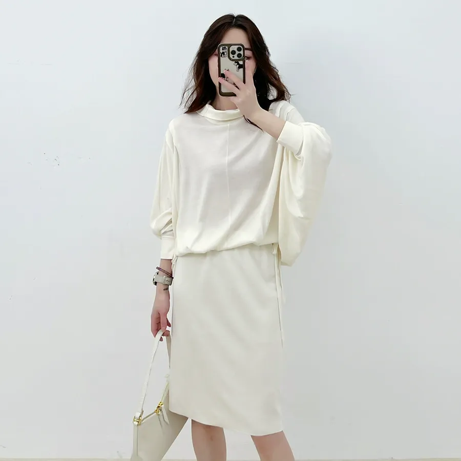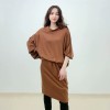 high neck bat sleeve dress new women mulberry silk wool knitted loose long dress