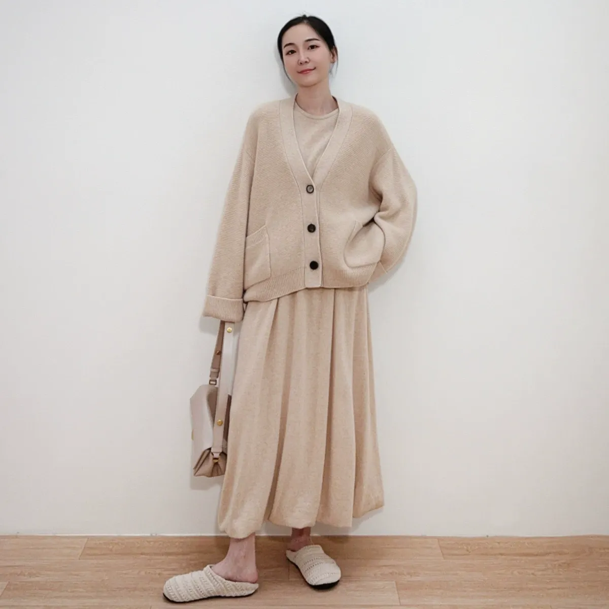 pure cashmere knitted sweater for women v-neck medium length single breasted cashmere cardigan sweater