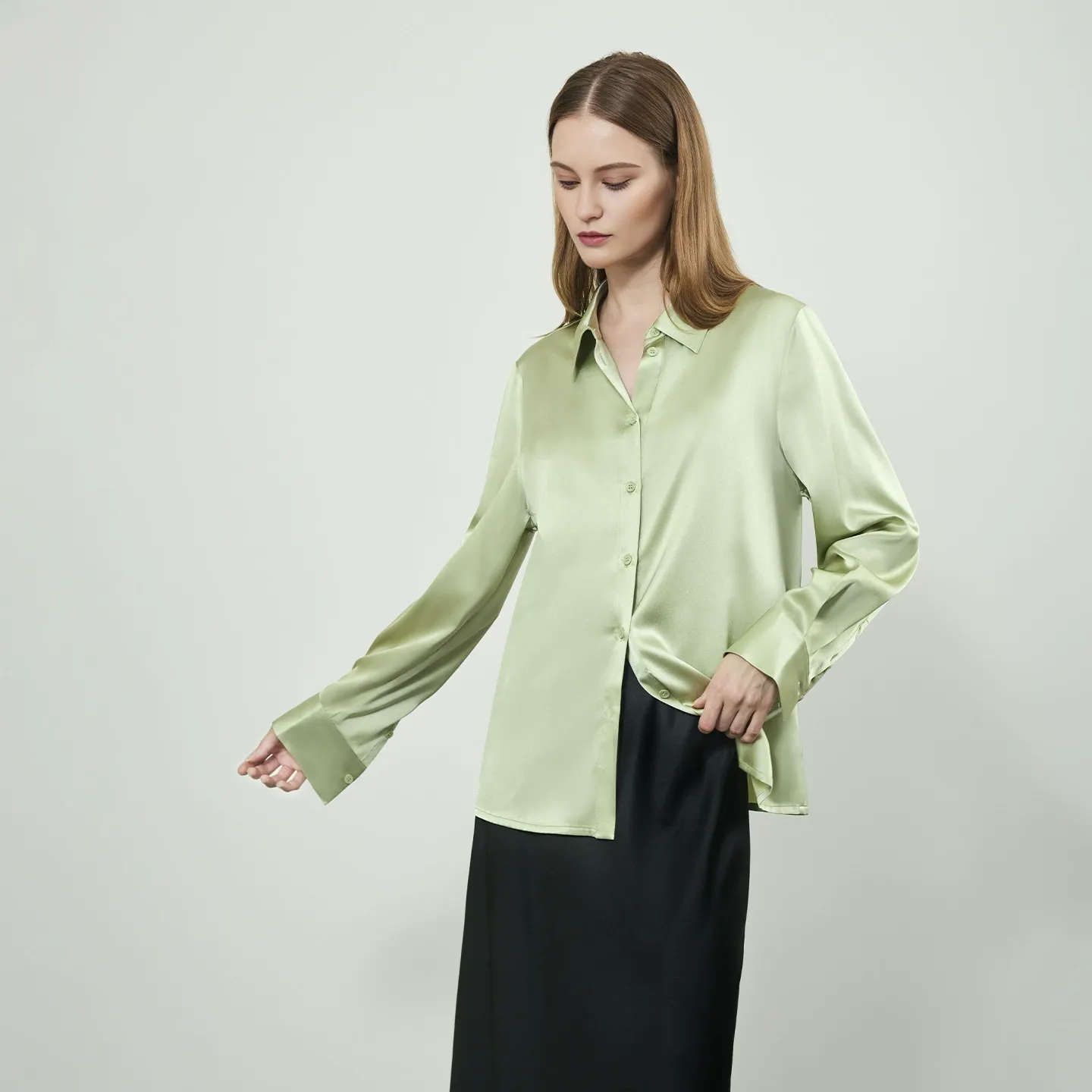 small fresh silk shirt made of high-quality mulberry silk with a v-neck worn as an outerwear thin shirt paired with a top shirt